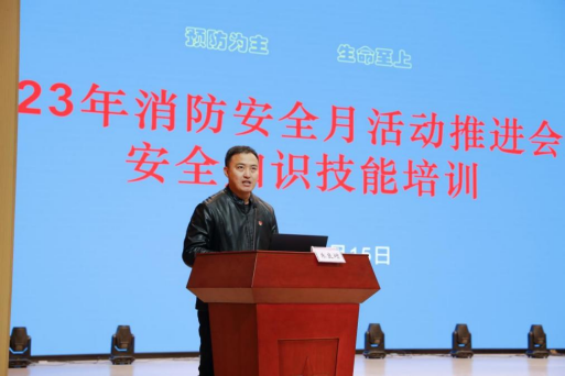 安全管理处处长朱良增通报了消防安全月活动工作开展情况,列举了学生宿舍、餐厅、商业场所等防火重点部位常见的安全隐患和校园火灾交通等事故案例,要求教职员工学习掌握安全知识,具备消防安全四个能力,消除安全风险,全面保障校园安全稳定。