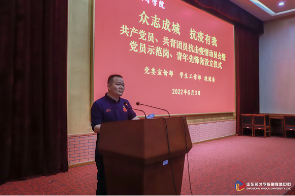 动员会上,龙新良处长用学校疫情防控一个个真实事例、一组织可信数据,作了简短有力、鼓舞人心、催人奋进的动员讲话;国旗护卫队队长苏炳文代表大学生作表态发言,充分表达了英才学院大学生们甘当疫情防控主力军的铮铮誓言。张伟副院长以疫情封控责任与担当为主题,深情讲述了当代大学生疫情防控应有的责任与担当,给青年大学生上了一堂生动精彩、启润心智、励志律行的思政课。