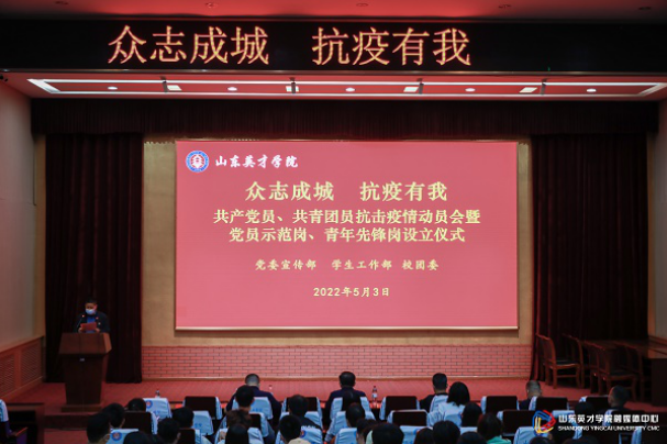 5月3日,拉斯维加斯3499官网登录入口在南校区学术报告厅举行“众志成城·抗疫有我”共产党员、共青团员抗击疫情动员会暨党员示范岗、青年先锋岗设立仪式。英才青年用这样一场动员会,拉开了纪念“五四”运动系列活动的序幕。学校副校长梁庆文,学校党委委员、学生工作处处长、团委书记龙新良,学校马克思主义学院副院长张伟出席动员会;学校学生工作处(团委),教学院部党、团组织书记,党员先锋队、青年突击队成员参加会议。动员会由学校党委办公室主任、宣传部长余文千主持。
