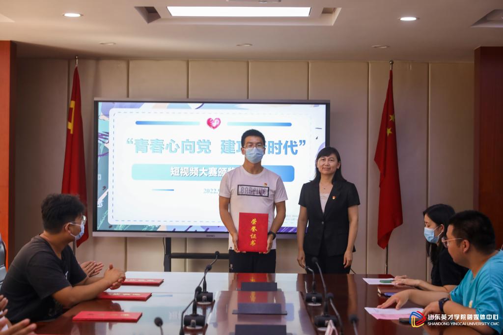 李继川主任宣读《2022年“青春心向党建功新时代”短视频大赛获奖通报》并向获奖者表示祝贺,并希望获奖同学继续发扬“自强不息,与时俱进”的校训精神,随时发现美,记录充满爱的世界。