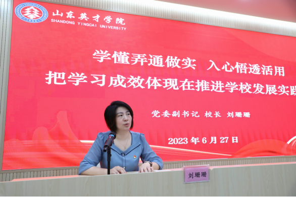 党委副书记、校长刘珊珊以“学懂弄通做实、入心悟透活用,把学习成效体现在推进学校发展实践上”为题,为学校党员干部讲专题党课,强调要坚持不懈用习近平新时代中国特色社会主义思想凝心铸魂,奋力推进学校高质量发展。校领导、党建工作指导员、中层干部聆听了专题党课。