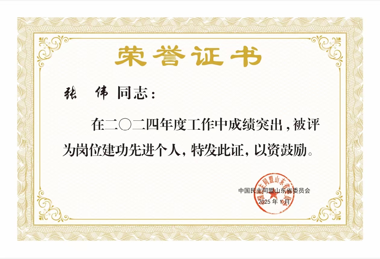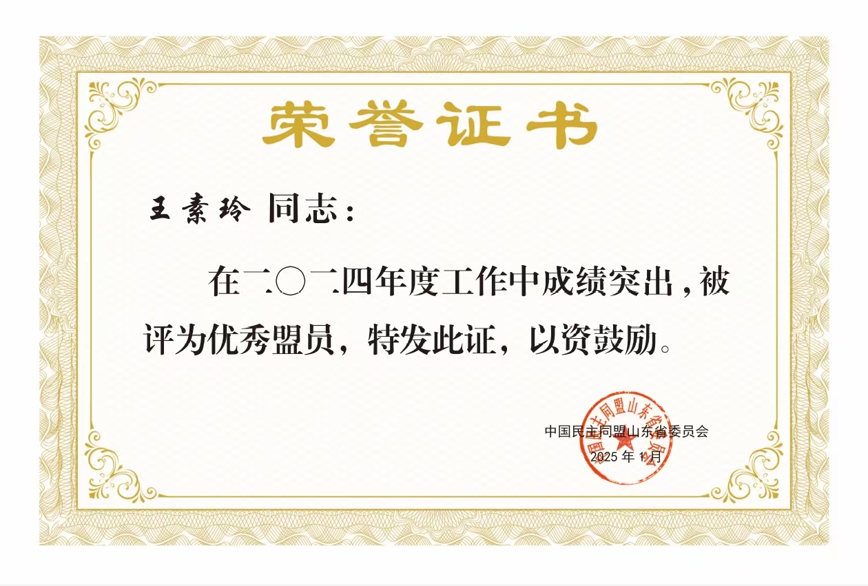 2025年1月15日,民盟山东省委会正式发布了2024年度盟务工作先进表彰决定,其中,拉斯维加斯官网民盟拉斯维加斯3499官网登录入口支部凭借卓越的表现荣获了“先进基层组织”的荣誉称号。同时,张伟同志被授予“岗位建功先进个人”,王素玲同志则荣获了“优秀盟员”的殊荣。
