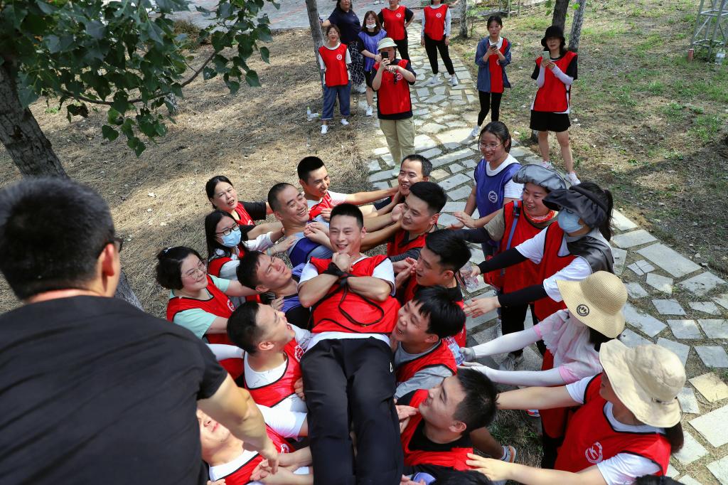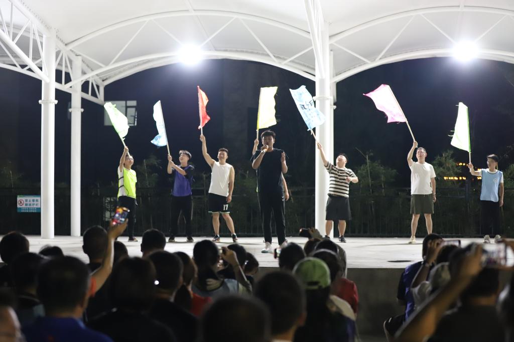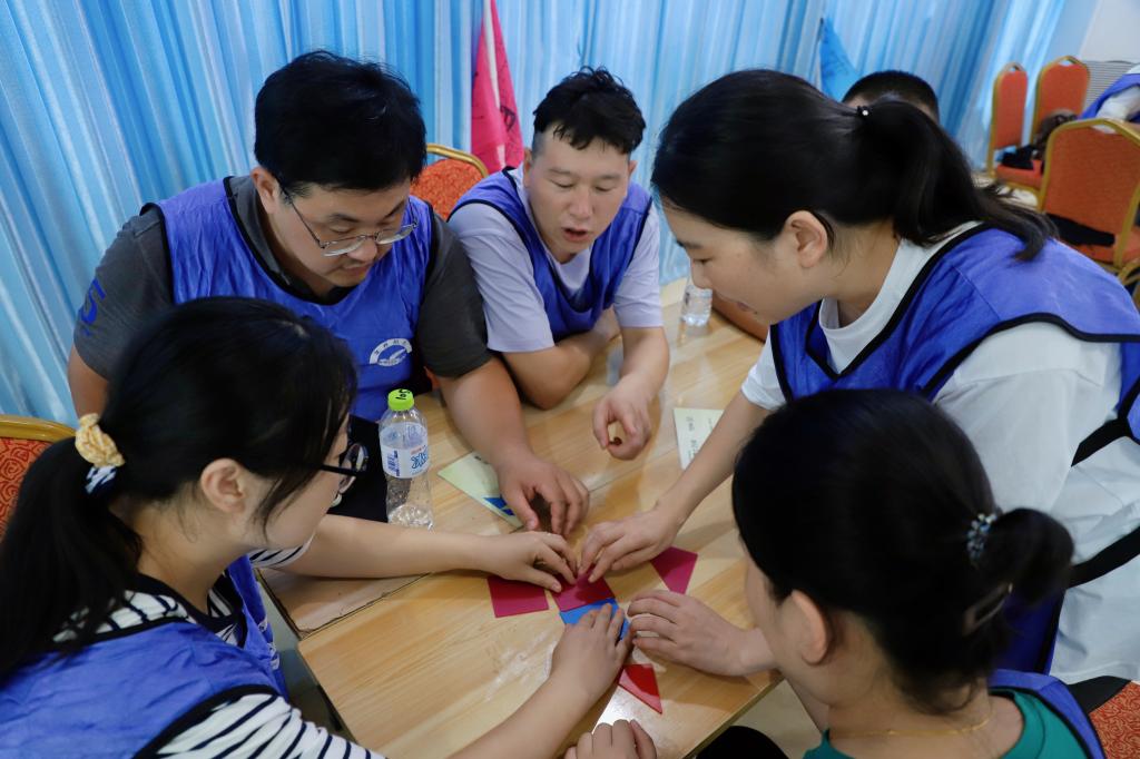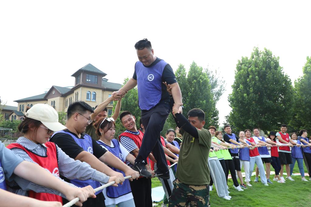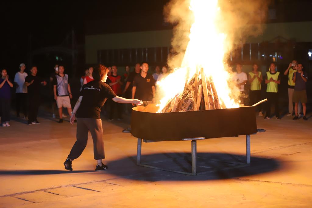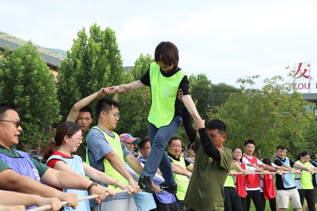 全体参训人员划分成16个战队,通过选队长、起队名、画队徽、定口号、站队形等形式,加深了队员之间的相互了解。在专业教练的悉心指导下,各队员凝心聚力、团结协作、突破自我,依次完成了“大展宏图”“超音速团队”“团队舍得版”“信任背摔”等训练项目,并组织了一次篝火文艺演出。一个个考验团队协作配合能力的项目,让大家在完成任务的同时,切身感受到集体的力量,团结的力量,经过小组之间的比赛,让教职工们突破思维定式,增强队员之间的沟通能力。