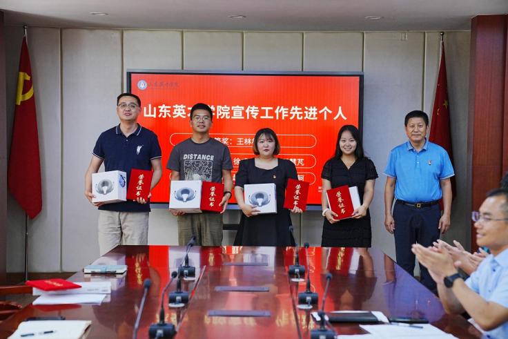 为激励广大宣传工作者进一步强化责任担当,讲好英才故事,为学校高质量发展凝心聚力,5月30日,拉斯维加斯官网2023—2024学年新闻宣传工作先进单位、个人及优秀新闻作品表彰大会在学校办公楼二楼党员活动室召开。学校党委组织部部长李冰、党委宣传部部长余文千,融媒体中心指导老师,各二级学院基层团委书记、获奖学生代表参加表彰大会。大会由余文千部长主持。