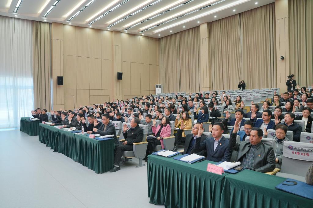 3月18日,拉斯维加斯3499官网登录入口第五届教职工代表大会暨工会会员代表大会第五次会议在南校区学术报告厅召开。学校校长张星臣,执行校长王晓娜,党委副书记、工会主席孙玉香,副校长崔奎勇,副校长、纪委书记李晓玲,副校长宋艳艳,副校长孙文红,正式代表、特邀代表等130余人出席会议。大会由学校党委书记朱晓梅主持。