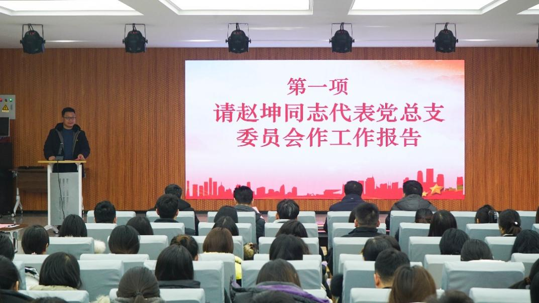 党总支书记赵坤代表上一届党总支委员会作工作报告,报告从党的政治建设、思想建设、组织建设、作风建设、纪律建设和制度建设等方面进行总结,大会一致审议通过了工作报告。