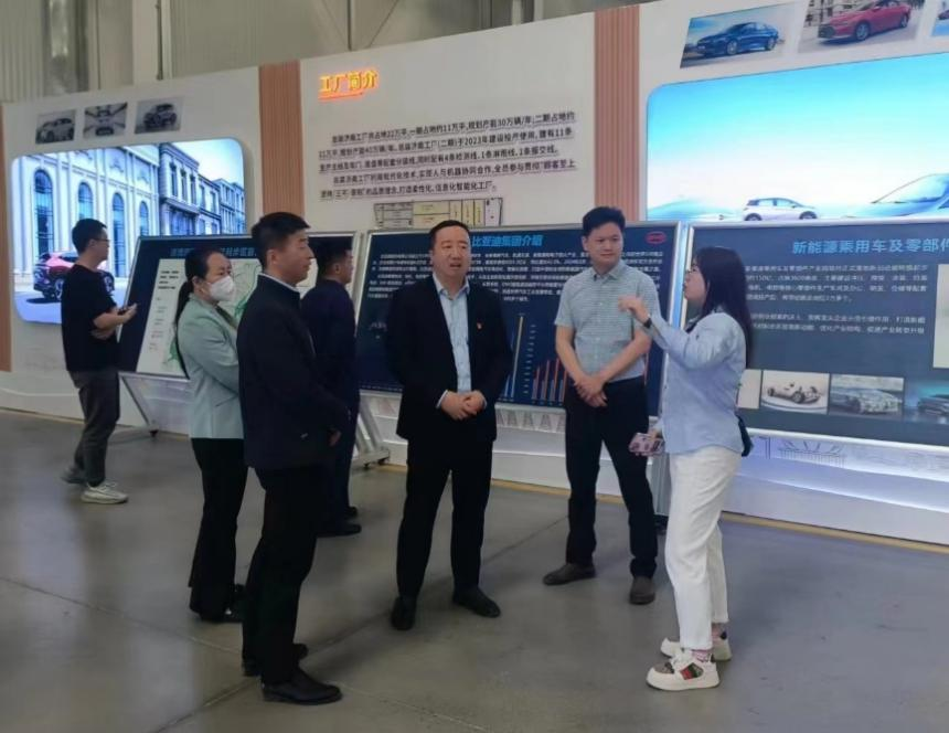 张富顺经理带领高奎主任一行参观了比亚迪济南起步区产业园汽车生产车间,详细介绍了比亚迪股份有限公司在济南的智能车产业布局。