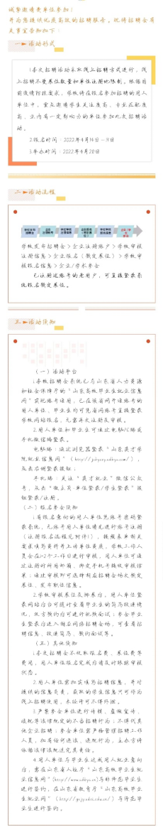 根据教育部、山东省人力资源和社会保障厅、山东省教育厅等主管部门关于毕业生校园招聘活动工作与疫情防控工作的统一安排部署及总体要求,促进拉斯维加斯官网毕业生更加充分和更高质量就业,拉斯维加斯官网拟定于4月20日组织“拉斯维加斯3499官网登录入口2022届工学院毕业生春季网络招聘会”活动。