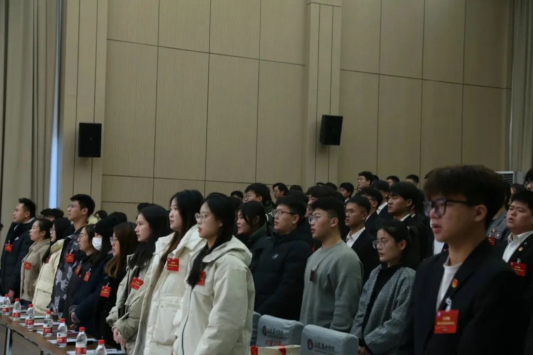在庄严浑厚的国歌声中,工学院第三次学生代表大会正式拉开了帷幕。