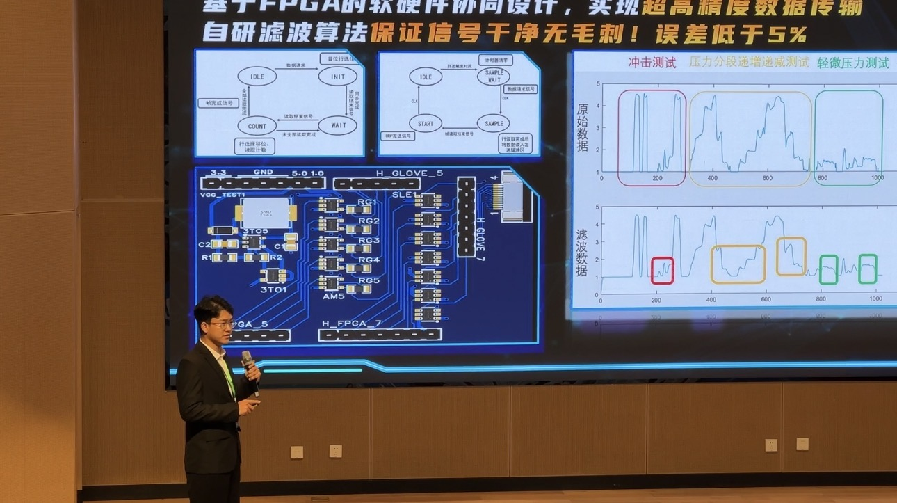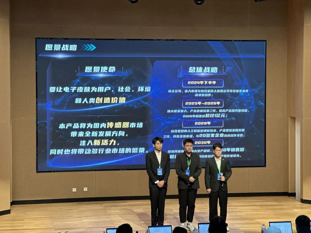 10月18日,决赛正式打响。工学院作为拉斯维加斯3499官网登录入口的唯一代表队,由辅导员贾楠老师带队,携刘秀成、王文康、董鑫源等学生共同研发的项目《有“感”有得--超柔性智能电子皮肤引领者》亮相赛场。该项目凭借其独特的创意、先进的技术和广泛的应用前景,在众多参赛作品中脱颖而出,荣获高职学生组二等奖。