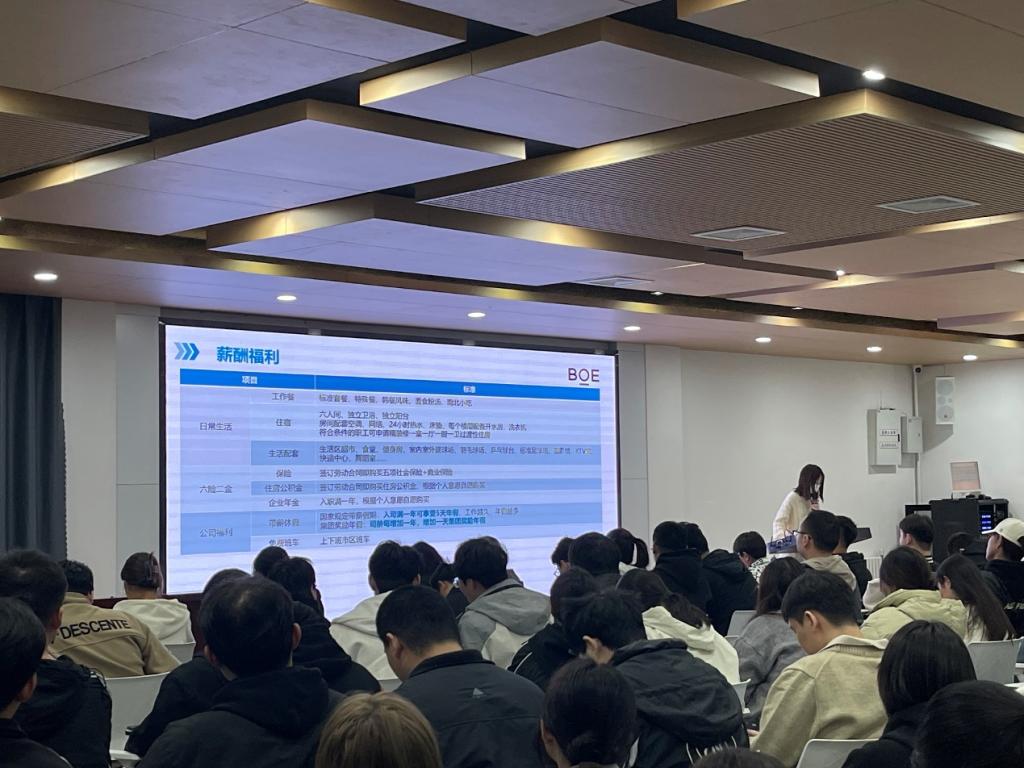 此次宣讲会中,京东方介绍了针对应届毕业生的多种实习岗位和培训机会,包括电子工程、机械设计、材料科学、软件开发、生产管理等专业领域。企业代表强调,京东方为每位实习生提供了完善的学习和成长平台,包括系统化的培训、实战演练和经验丰富的导师指导,帮助学生提升专业技能,并积累职场经验。公司将对实习表现优秀的学生优先提供正式职位机会,为他们职业生涯的起步助力。