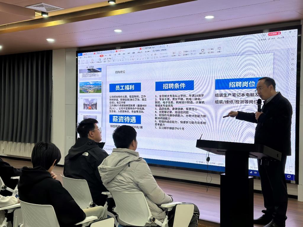 在宣讲会中,联宝科技的负责人详细介绍了公司为工院学子提供的多种实习岗位及培训体系,涵盖了电子工程、机械设计、软件开发、供应链管理等多个领域。通过一系列的实习项目,联宝科技希望帮助工院学子更好地将理论知识与实际应用相结合,为他们提供职场初体验的机会。