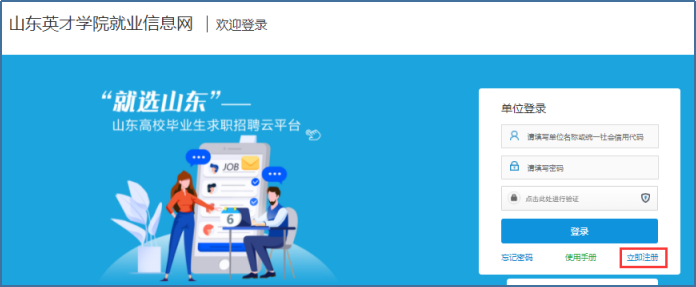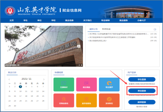 (一)通过拉斯维加斯官网就业信息网(http://jobycxy.sdbys.com/)点击【单位登录】进入登录页。