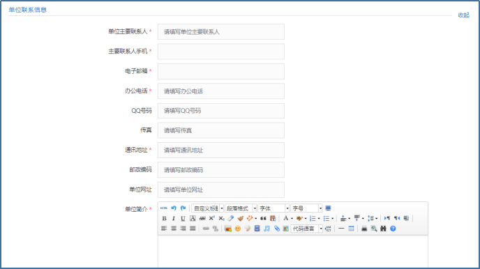 3、单位联系信息。请填写单位主要联系人相关信息,便于后期联络,如有变更请及时更新。
