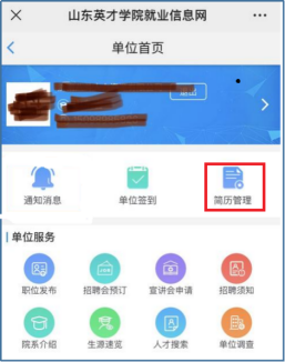 方法二:通过学校微信公众号“英才就业”查看。点击“微主页”,选择企业登录,点击简历管理查看收到的简历。