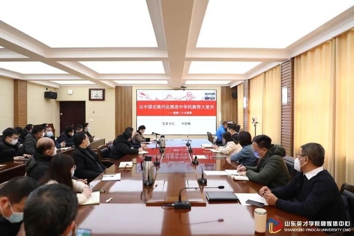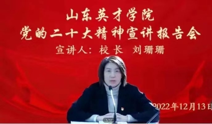 二、坚持高标准推进,在学深悟透上下功夫。一是领导干部带头讲。坚持把学习宣传贯彻党的二十大精神作为“第一议题”,党委班子成员深学热议、深研细究、深思笃行,领导干部坚持利用业务时间先学一步、多学一点、深学一层,率先掀起了学习高潮。书记、校长坚持带头学、带头讲,积极开展“书记第一讲”活动,学校党委书记朱晓梅带头为全校师生讲第一课,刘珊珊校长带头深入联系的人文学院为师生作宣讲,其他班子成员纷纷到所联系的二级学院,采取座谈会、研讨会、报告会等多种形式,组织师生员工深入学习。二是聘请专家深入讲。为推进学习贯彻实起来、深下去,学校邀请京鲁律师事务所党支部书记,济南市律师协会副会长郝纪勇做学习贯彻习近平法治思想专题宣讲,引导师生员工深刻领悟“坚持全面依法治国,推进法治中国建设”的重大思想,着力提升依法办学治校能力。三是基层书记普遍讲。各二级学院党组织书记坚持带头学、带头讲,紧密联系党员干部群众思想和工作实际,广泛开展“书记第一讲”、讲好本院第一课活动,同师生开展面对面互动交流,推动学习宣传,贯彻走深走心走实。宣讲期间,30多名党员领导干部、党组织书记为师生宣讲42场次,受众2万余人。