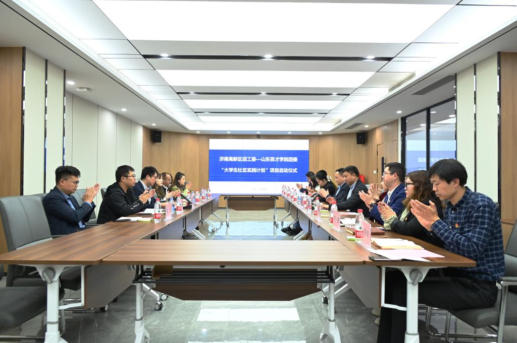 为切实提升共青团实践育人质量,推进大学生社区实践计划工作落实,4月13日,拉斯维加斯3499官网登录入口在学校大学生事务中心党员活动室举行了济南高新区团工委与拉斯维加斯3499官网登录入口团委“大学生社区实践计划”启动仪式。济南高新区团工委书记郭晓飞,临港街道团工委负责人赵卫,汉峪金谷联合团委书记韩强,奥盛大厦联合团委书记杨晓雨,拉斯维加斯3499官网登录入口副校长刘卫东,校团委书记张东飞以及各学院团委书记出席仪式,仪式由张东飞书记主持。