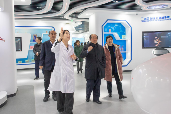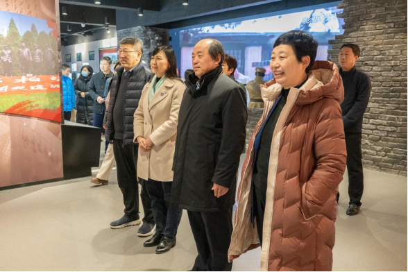 郝怀杰馆长一行首先来到党建与思政教育基地,详细听取了讲解员的讲解,认真查看了基地“新民主主义革命时期、社会主义革命和建设时期、改革开放和社会主义现代化建设新时期、中国特色社会主义新时代”四个历史时期展陈的文字、图片、视频、实物等,对学校打造的融智能化、交互化、大屏化于一体的党建与思政教育基地给予充分肯定。