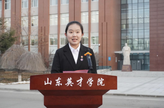学前教育学院陈姿含、商学院贾继欣两位学生代表在发言中讲到,作为时代答卷人,要坚定报国理想,学习新思想,争做新青年,做具有责任意识和创新精神的建设者、做具有过硬本领和高尚品德的奋进者。发扬“自强不息 与时俱进”的校训精神,将崇高理想融入日常的行为习惯中,积极进取,用智慧、创造、实干、革新的姿态,在劈波斩浪中开拓前进,在披荆斩棘中开辟天地,释放青春激情、追逐青春梦想!