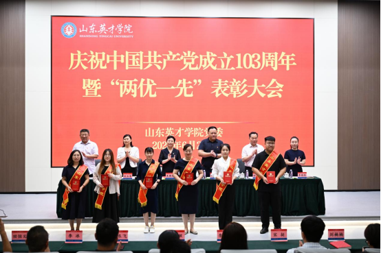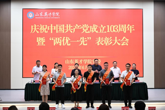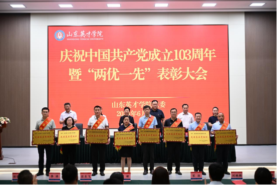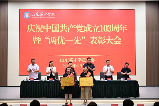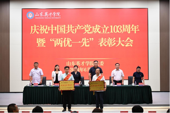 伴随着雄伟激昂的国歌声,表彰大会正式开始。孙玉香宣读表彰决定;校领导为受到表彰的25名优秀共产党员、10名优秀党务工作者、2个“双带头人”工作室、8个先进基层党支部、2个先进党总支颁奖。