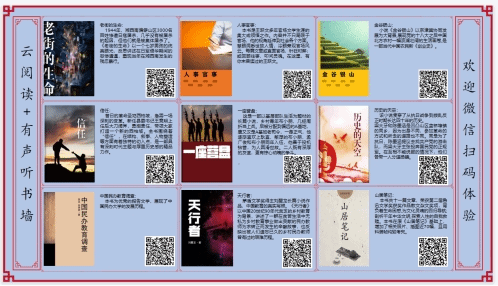 同时,图书馆在二楼智慧体验区部署了有声听书墙,通过LED屏定期更新展示。读者通过微信扫描听书墙上的图书二维码,即可跳转到相关页面,进行电子书、听书资源的阅读畅听。