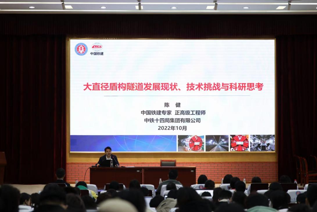 为营造良好的学术氛围,拓展学术领域,10月18日下午,工学院举办的“精匠讲堂系列讲座”在南校区学术报告厅顺利举行。中铁十四局集团副总工程师陈健博士应邀做“大直径盾构隧道发展现状、技术挑战与科研思考”专题讲座,工学院土木建筑专业群全体教师及学生代表到场聆听。