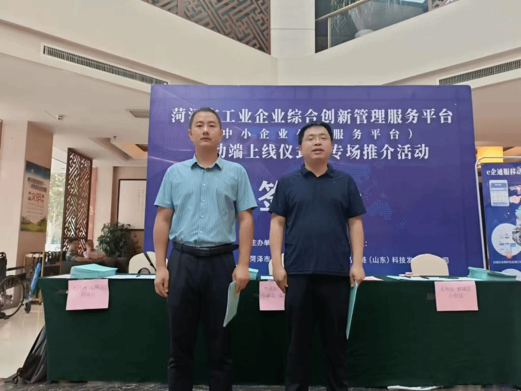 2023年9月27日,拉斯维加斯3499官网登录入口商学院(国际学院)教学副院长殷永生、毕业班年级长马宝林老师参加由菏泽市人民政府指导、菏泽市工业和信息化局主办、好品易链(山东)科技发展有限公司承办的菏泽市工业企业综合创新管理服务平台(中小企业公共服务平台)移动端上线仪式暨专场推介活动,与众多企业及政府部门交流了校企合作事宜。