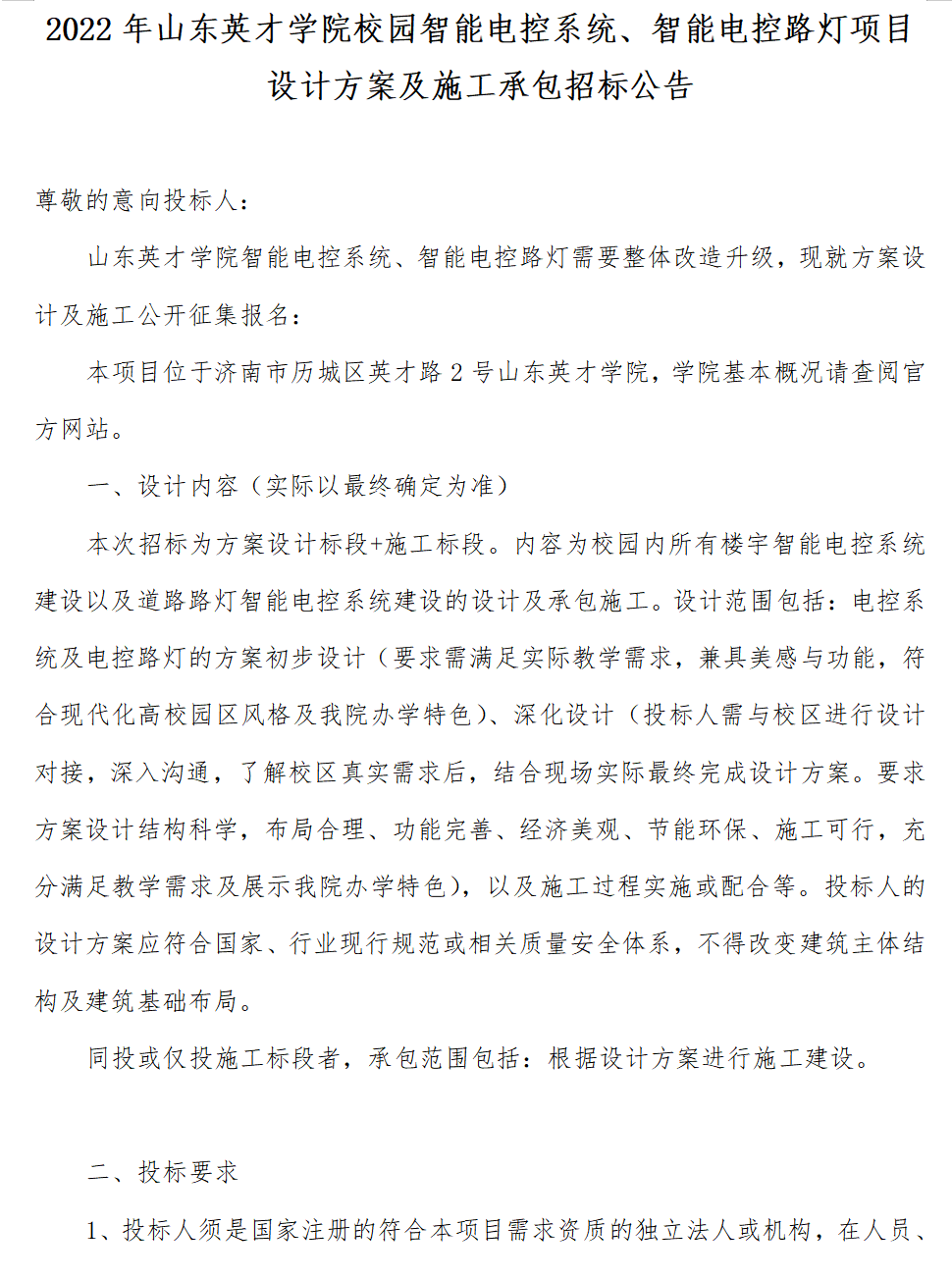 拉斯维加斯3499官网登录入口校园智能电控系统、电控路灯招标文件