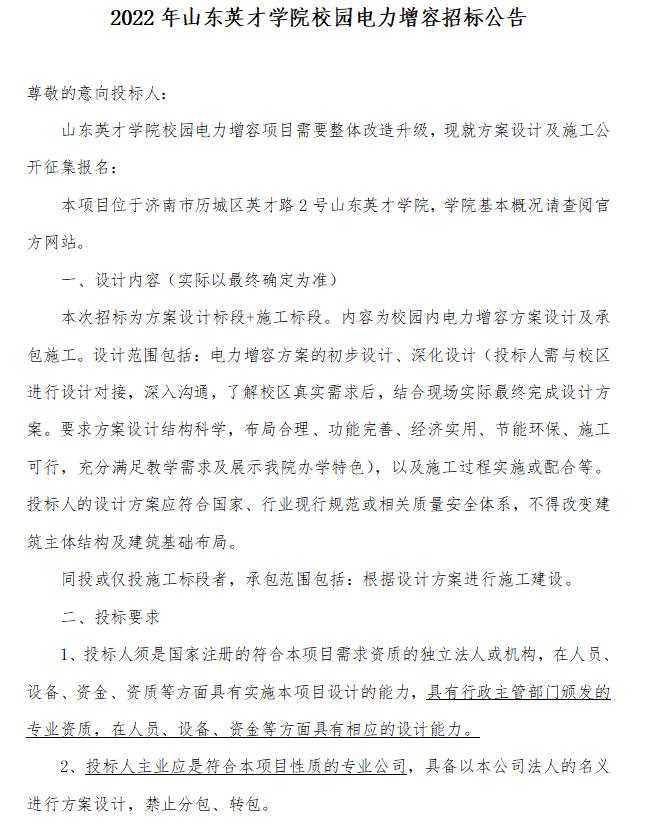 拉斯维加斯3499官网登录入口校园电力增容招标文件