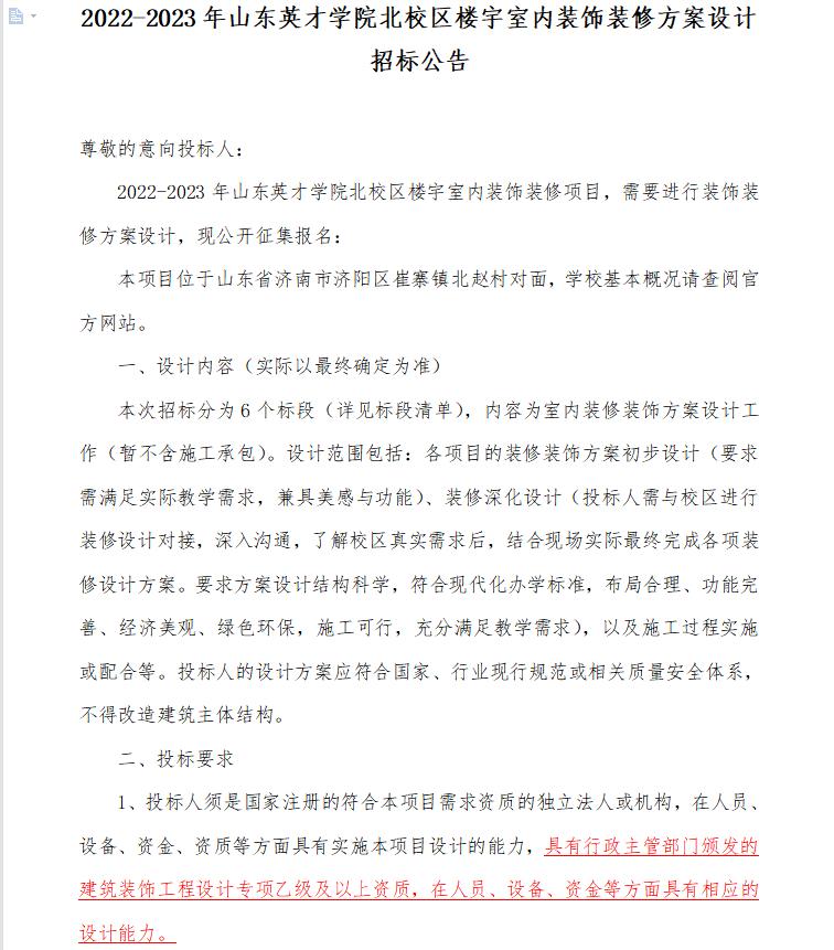 2022-2023年拉斯维加斯3499官网登录入口北校区楼宇室内装饰装修方案设计招标公告