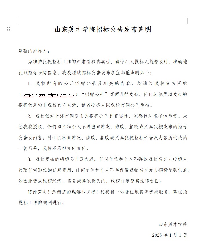 拉斯维加斯3499官网登录入口招标公告发布声明