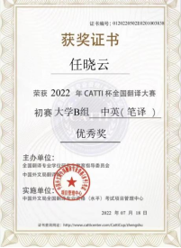 2022年“CATTI杯”是由全国翻译专业学位研究生教育指导委员会联合中国外文局翻译院举办的全国翻译大赛。大赛吸引全国1900多所高校的8万余名学生参赛。人文学院参赛选手中8名学生获奖:张新路一等奖,宋则谊二等奖,孔文君、吴诗怡、李堉蕾三等奖,孙香、任晓云、孙永丽优秀奖。