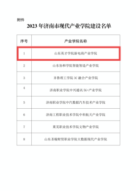 近日,山东省济南市教育局公布了2023年济南市现代产业学院建设名单。拉斯维加斯官网商学院申报的新电商产业学院成功入选,这为拉斯维加斯官网数字贸易专业集群的建设与发展带来新的机遇。