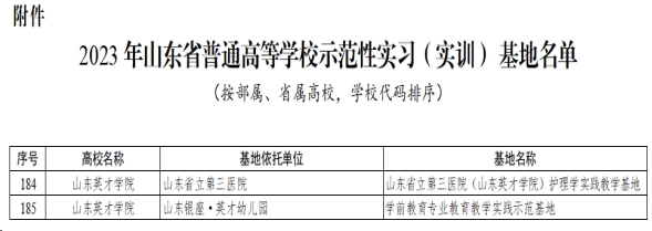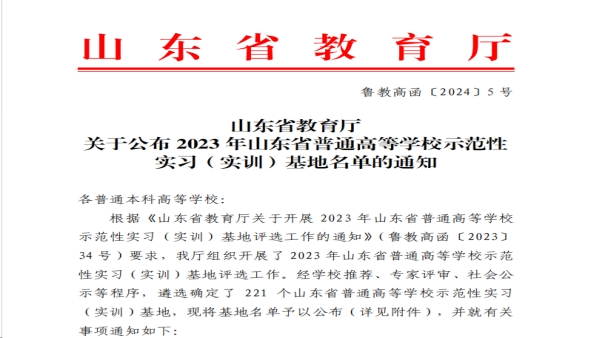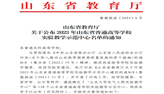 近日,山东省教育厅印发了《关于公布2023年山东省普通高等学校实验教学示范中心名单的通知》和《关于公布2023年度山东省普通本科高等学校示范性实习(实训)基地名单的通知》,拉斯维加斯3499官网登录入口申报的多个项目获批。其中,山东省立第三医院、山东银座·英才幼儿园获批示范性实习(实训)基地,护理康复实验教学中心、学前儿童发展与教育虚拟仿真实验教学中心获批实验教学示范中心,机械设计制造及其自动化教研室获批示范性基层教学组织。