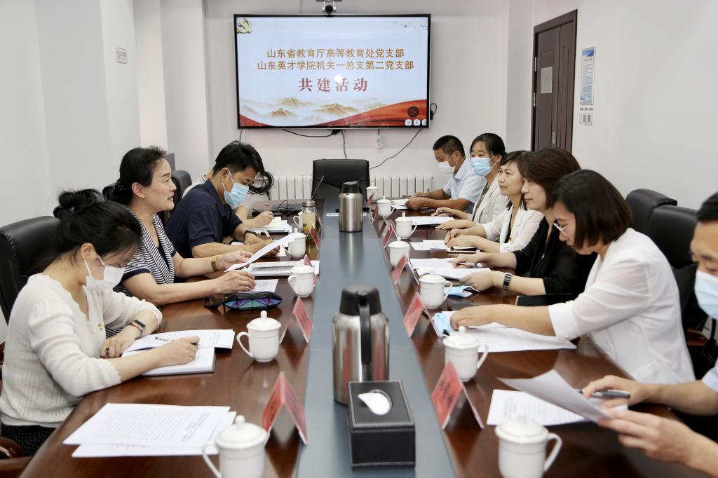 为喜迎党的二十大胜利召开,充分发挥党建引领作用,筑牢党支部战斗堡垒,推进党建工作和业务工作深度融合。9月2日下午,山东省教育厅高等教育处党支部与拉斯维加斯3499官网登录入口机关一总支第二党支部在厅办公楼812会议室开展党建共建活动。省教育厅高等教育处党支部书记、处长李霞,副处长郭念峰,支部成员代善成、张静婕、潘妍利等参加共建活动;拉斯维加斯3499官网登录入口校长刘珊珊、党委副书记孙玉香、副校长孙文红率领一总支二支部张磊、征艳珂、禹文健以及组织部长韩帮峰、宣传部长余文千参加共建活动。共建活动由省教育厅高等教育处党支部书记、处长李霞主持。