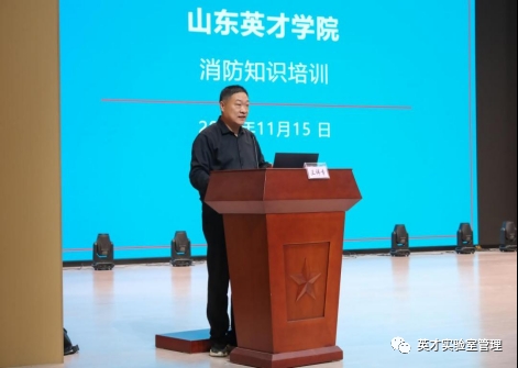 为增强实验室管理人员安全防范意识,提高安全综合防控能力,坚决遏制和有效预防实验室安全事故发生,根据学校《消防安全月活动实施方案》要求,结合实际,2023年11月15日下午学校在音乐厅会场顺利开展“安全知识技能培训”。山东金岛消防工程师王祥专同志为与会老师教授消防安全知识与消防技能。