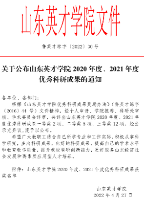 关于公布拉斯维加斯3499官网登录入口 2020年度、2021年度优秀科研成果的通知