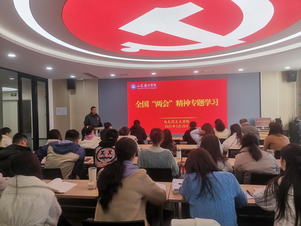 2025年3月18日上午,马克思主义学院组织专题理论学习,传达学习习近平总书记重要讲话和全国两会精神。专题学习会议由院长余文千主持,各教研室主任及全体教师参加。