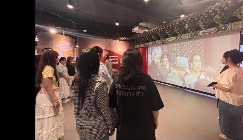 “中华人民共和国中央人民政府今天成立了!”——在开国大典纪录片播放现场,毛泽东主席的庄严宣告再次引发雷鸣般的掌声。许多师生眼含热泪,共同回顾中国共产党带领中国人民实现民族独立的伟大征程。学生代表感慨道:“历史深刻印证,只有中国共产党才能领导中国革命走向胜利。”通过展区内的珍贵影像与实物陈列,师生在历史与现实的交织中,进一步坚定了“听党话、跟党走”的政治自觉。