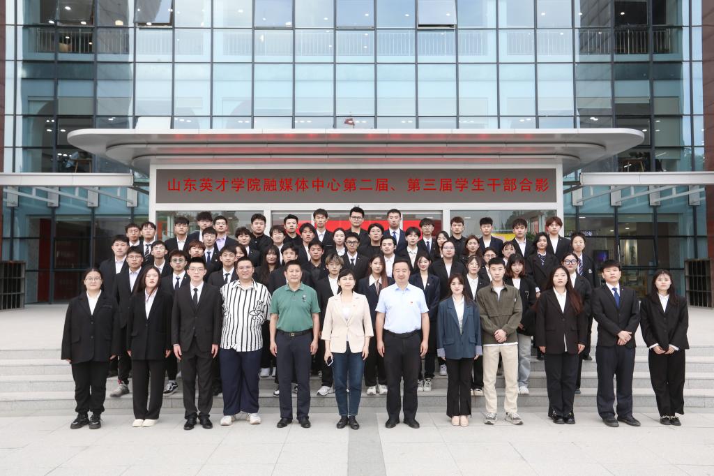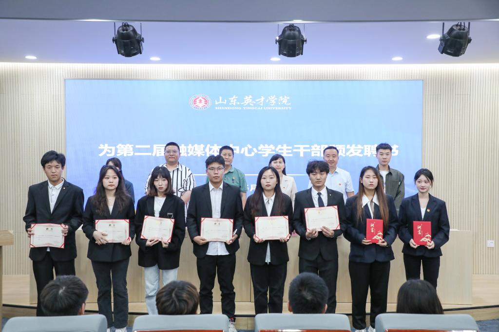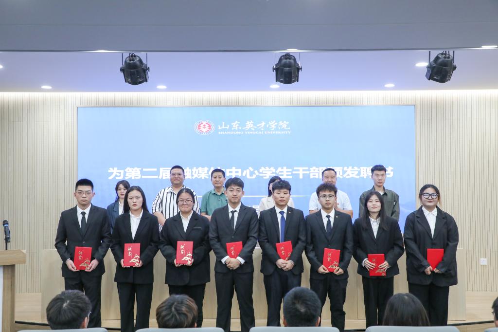 与会领导为第二届融媒体中心学生干部颁发聘书。余文千主任、高奎主任分别宣读南、北校区第三届融媒体中心学生干部任免决定。