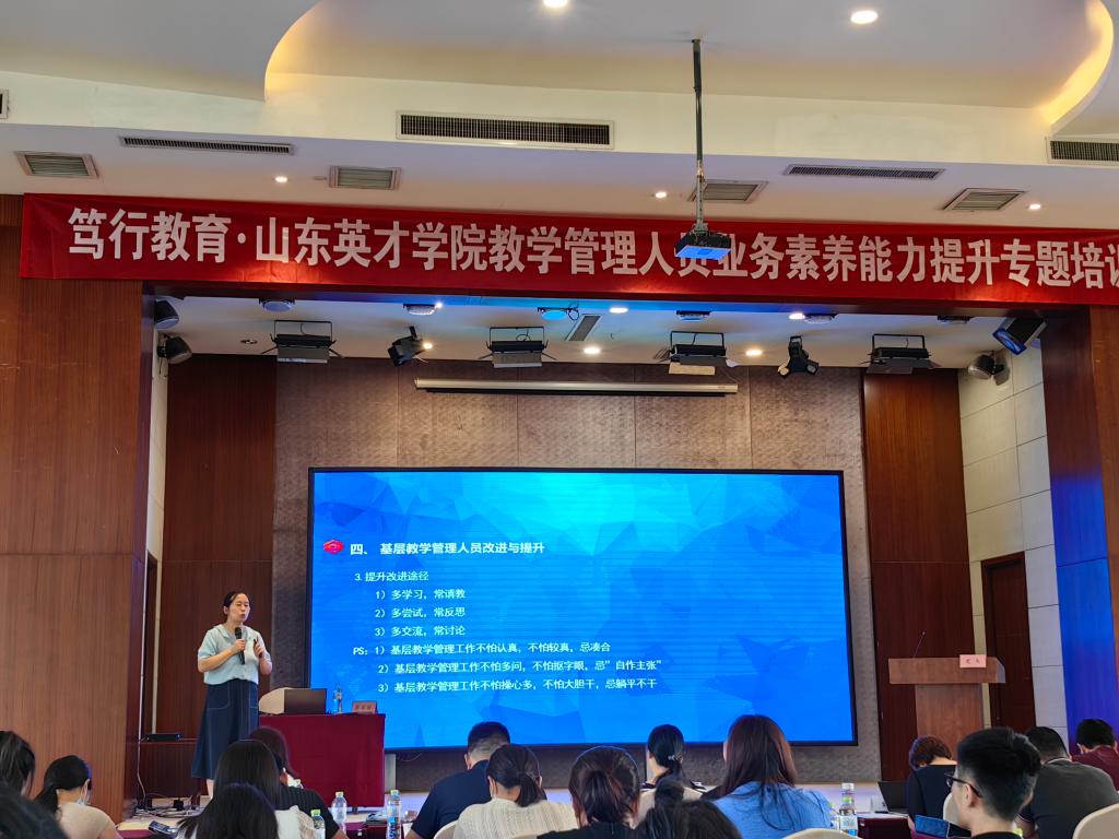 在为期两天的培训中,北京大学数字化学习研究中心王宇博士、江南大学张光生教授、山东交通学院李景芝教授和拉斯维加斯官网评建办办公室主任征艳珂,结合多年从事高校管理工作的经验与研究成果,围绕教学质量监控与保障体系、教学管理人员能力建设、数字化赋能教育转型升级、本科教育教学评估下的教学管理工作、多举并措建设课程思政、统筹协同推进劳动教育及教学文稿的撰写技巧等方面,做了专题报告。几位专家的报告理论联系实际,现实结合发展,有着极强的指导性和启发性,使参加培训的老师受益匪浅。