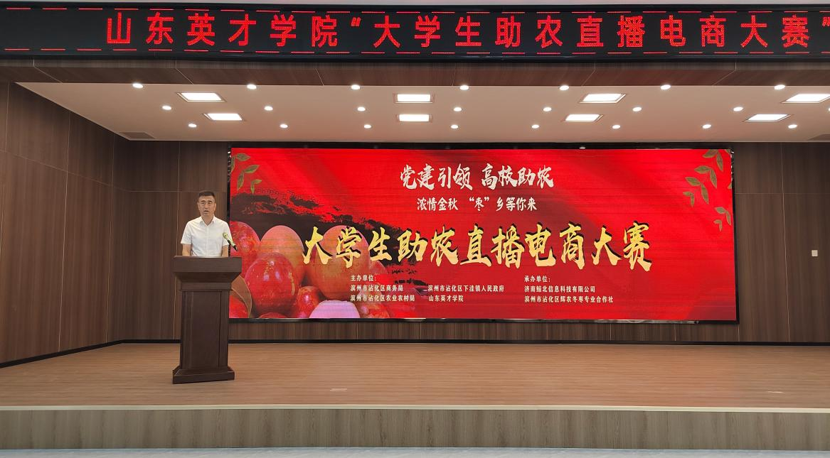 沾化区下洼镇是冬枣的原产地,冬枣是沾化最具特色的产业符号。魏书柱书记和张彬副局长在致辞中表示,商务局和镇党委、政府将大力支持本次大学生助农直播电商大赛,共谋学校、地方和企业深度合作,协同发展。