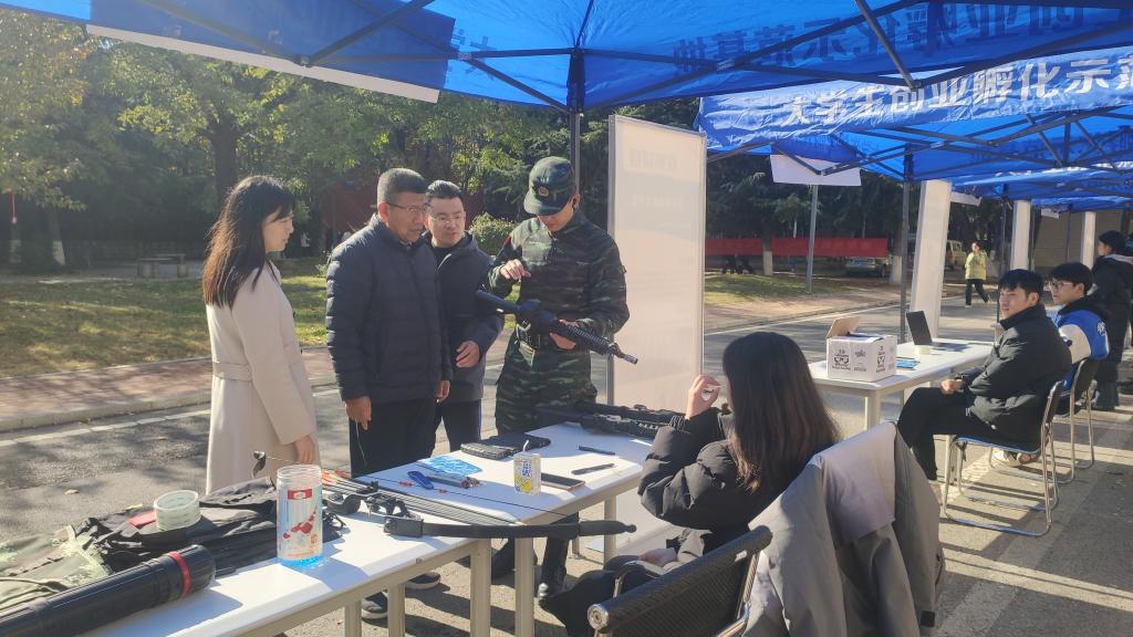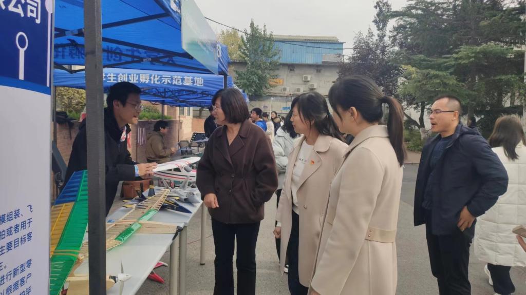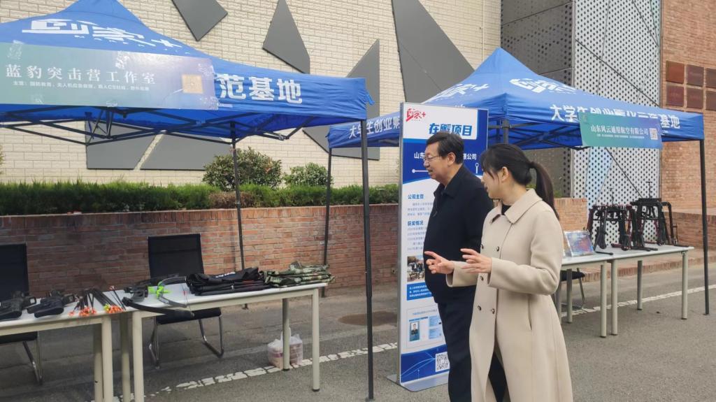 参加成果展示的有山东风云航空科技有限公司、济南腾飞机械有限公司、济南航悦思空无人机科技有限公司、蓝豹突击营工作室、小时大王手工坊等10家在孵企业,涵盖了航空模型、无人机林业植保、国防教育、手工彩绘、摄影摄像、人工智能、机械设备制造等领域。展示的项目吸引了全校师生积极参与,提高了拉斯维加斯官网师生参与创新创业的积极性,营造了浓厚的创新创业教育氛围。