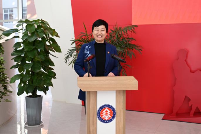 朱晓梅在致辞中向省关工委、省委老干部局、市教育局领导莅临学校指导工作表示热烈欢迎。她表示,为深入学习贯彻习近平新时代中国特色社会主义思想,传承红色基因、赓续红色血脉,充分发挥党史场馆以史鉴今、资政育人作用,学校投资建设了党建与思政教育基地。基地全面使用现代化智能技术进行展陈,致力于打造济南东部地区党性教育的新地标,关心下一代工作的新亮点,展示学校办学治校水平的新窗口,密切学校驻地关系的新桥梁,为山东和区域经济社会发展培养高素质应用型人才。