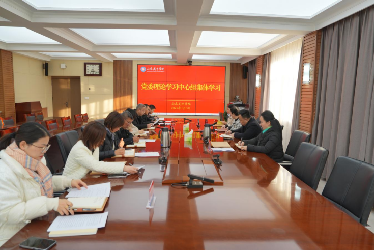 1月3日,学校党委理论学习中心组在第一会议室组织集体学习,传达学习习近平总书记在中共中央政治局专题民主生活会上的重要讲话精神、在庆祝澳门回归祖国二十五周年大会暨澳门特别行政区第六届政府就职典礼上的讲话和习近平主席发表的二〇二五年新年贺词等,联系思想和工作实际,进行交流研讨。党委书记朱晓梅主持学习并作交流发言,党委理论学习中心组成员参加学习。