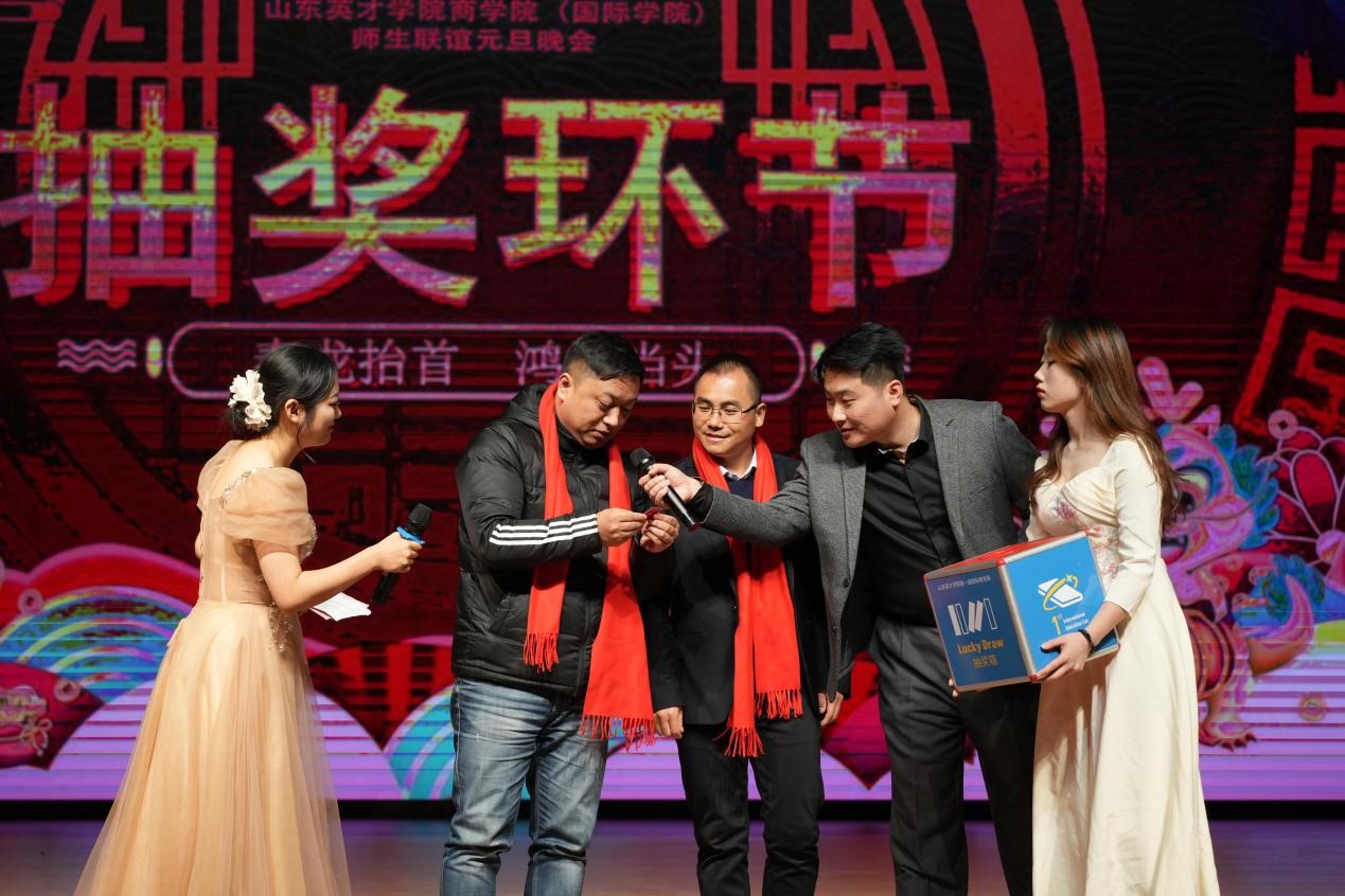 晚会设置了抽奖环节,老师同学们收获颇丰,嘉宾抽取的一个个幸运数字,一件件丰厚的奖品,带给了同学们最深深的祝福。