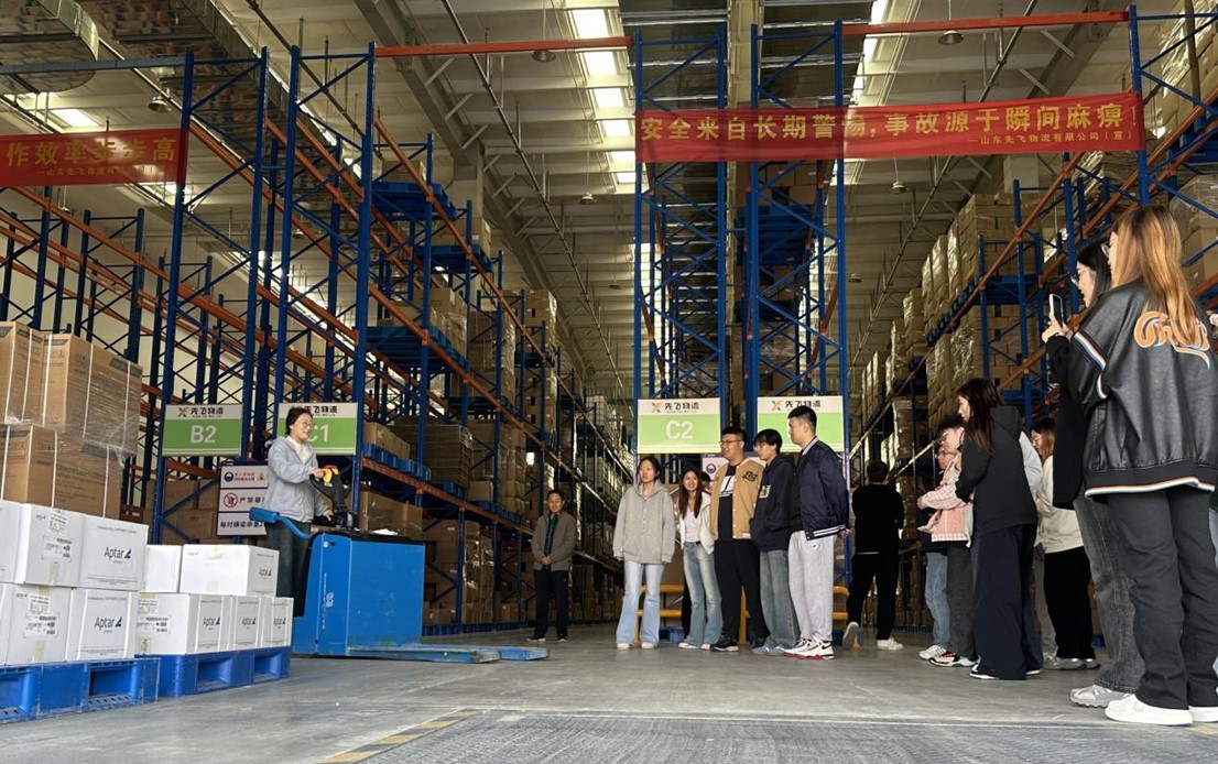 学生们在基地参观、学习了先进的物流设施,了解了物流行业的实际操作流程。通过资深员工的现场讲解与演示,学生们不仅学习了仓储管理、货物分拣等专业知识,还亲身体验了物流设备的操作。