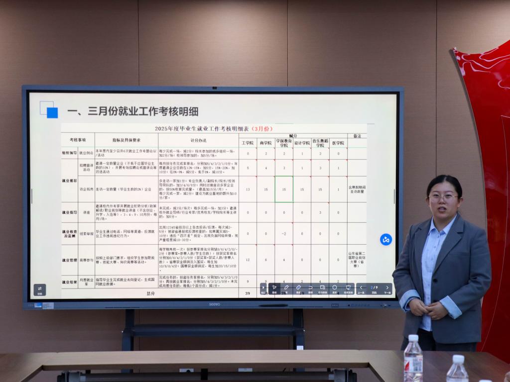会议伊始,毕业年级年级长张静汇报了我院当前毕业生的整体就业状况,并就存在的问题做了剖析,她表示,辅导员一定要明确就业材料的审核要素,做好困难学生的就业帮扶。最后,张老师就4月份的就业工作做了详细部署,明确责任分工。