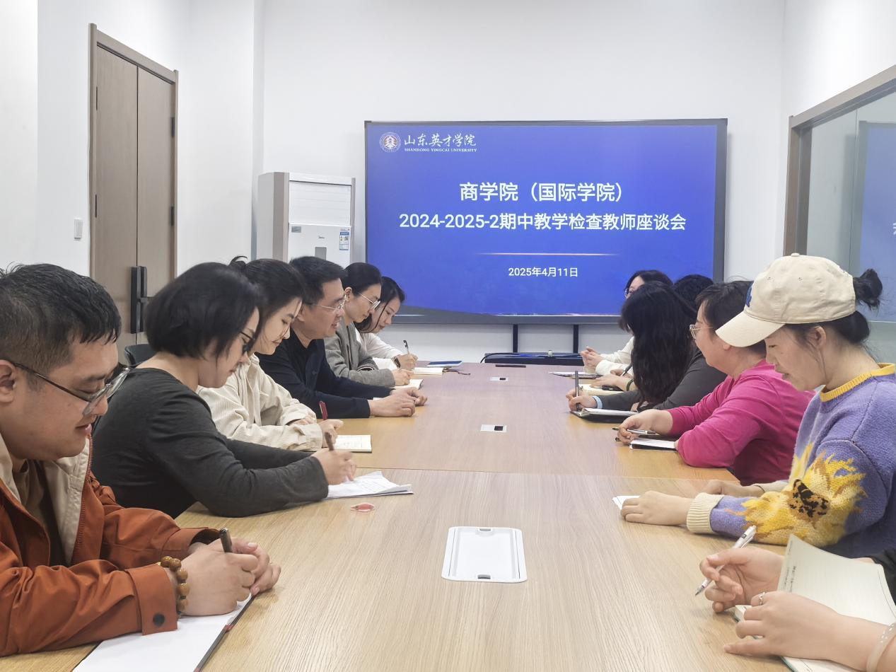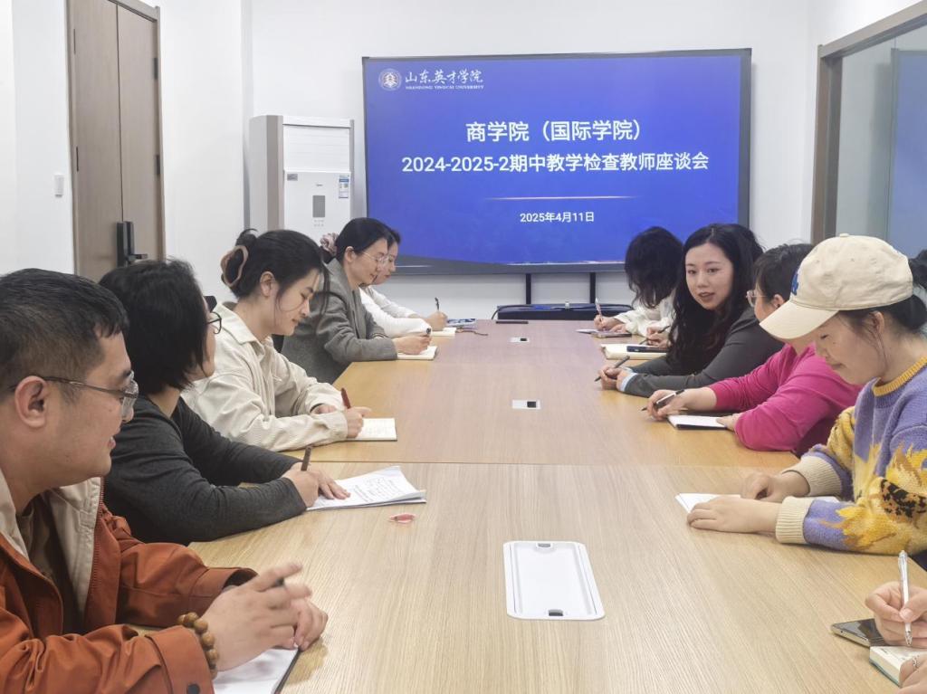 2025年4月11日,商学院于商学院楼会议室414召开2024-2025学年第二学期期中教学检查教师座谈会。会议由商学院教学副院长殷永生主持,各系部分教师代表参会,共同围绕教学改革、课堂管理、教师发展等议题展开深入交流,旨在总结阶段性教学成果,剖析问题短板,并探讨改进方向。