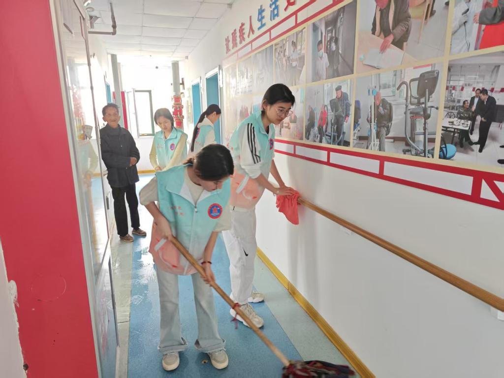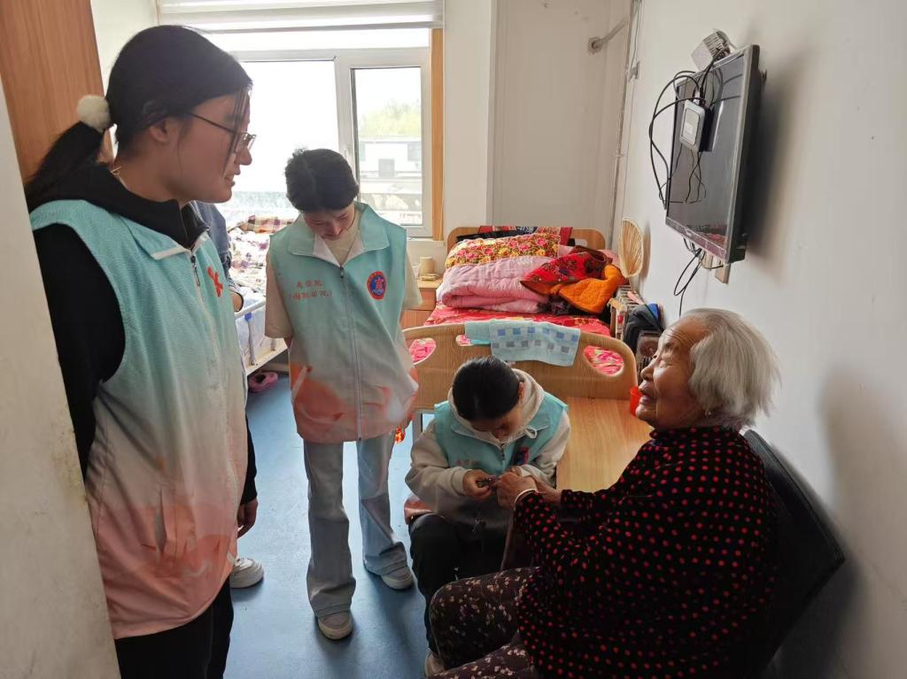 在老人的房间里,女生们小心翼翼地帮老人剪指甲。她们专注的神情,轻柔的动作,生怕弄疼老人,边剪还边与老人唠着家常,欢声笑语不断。